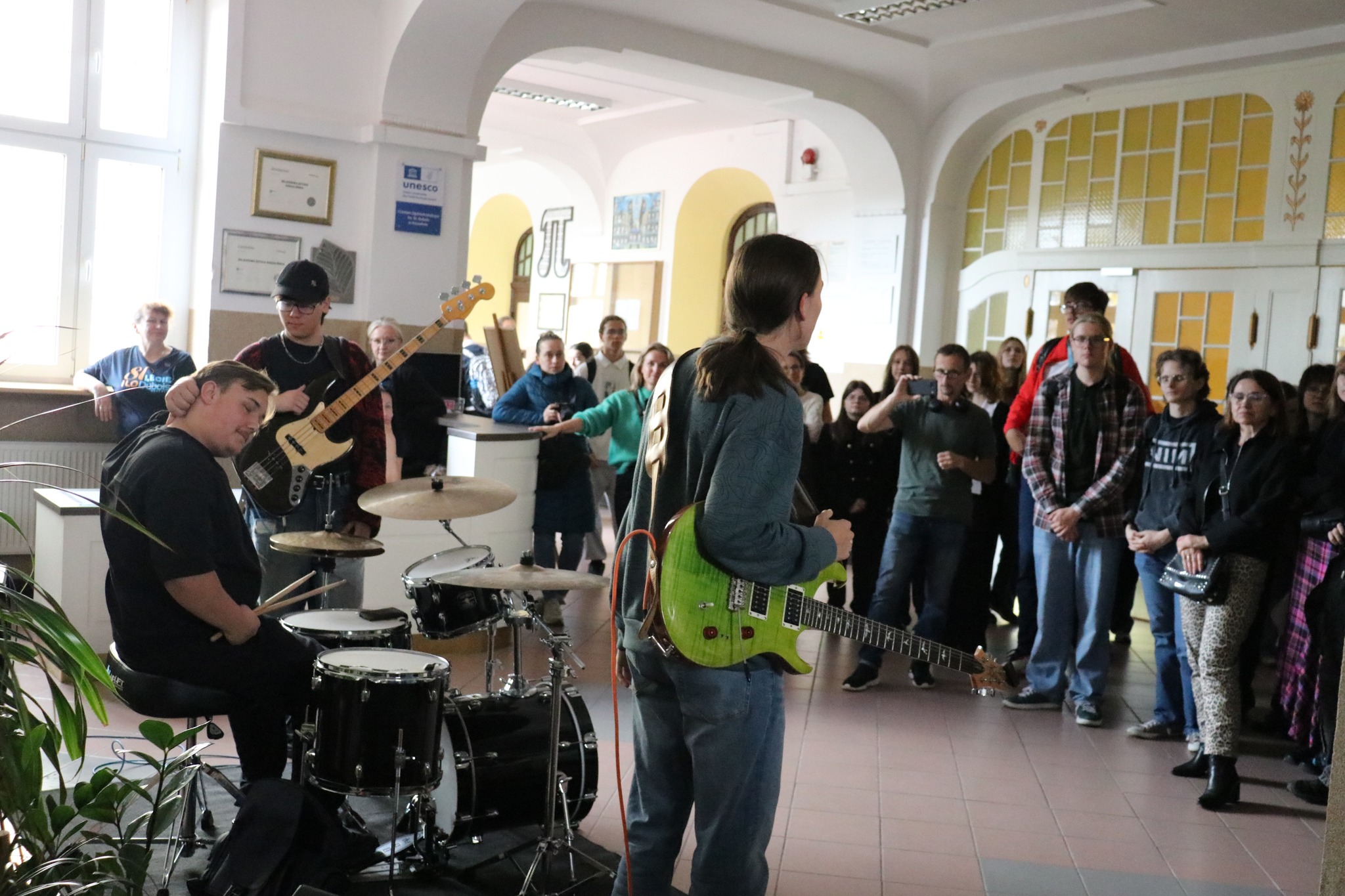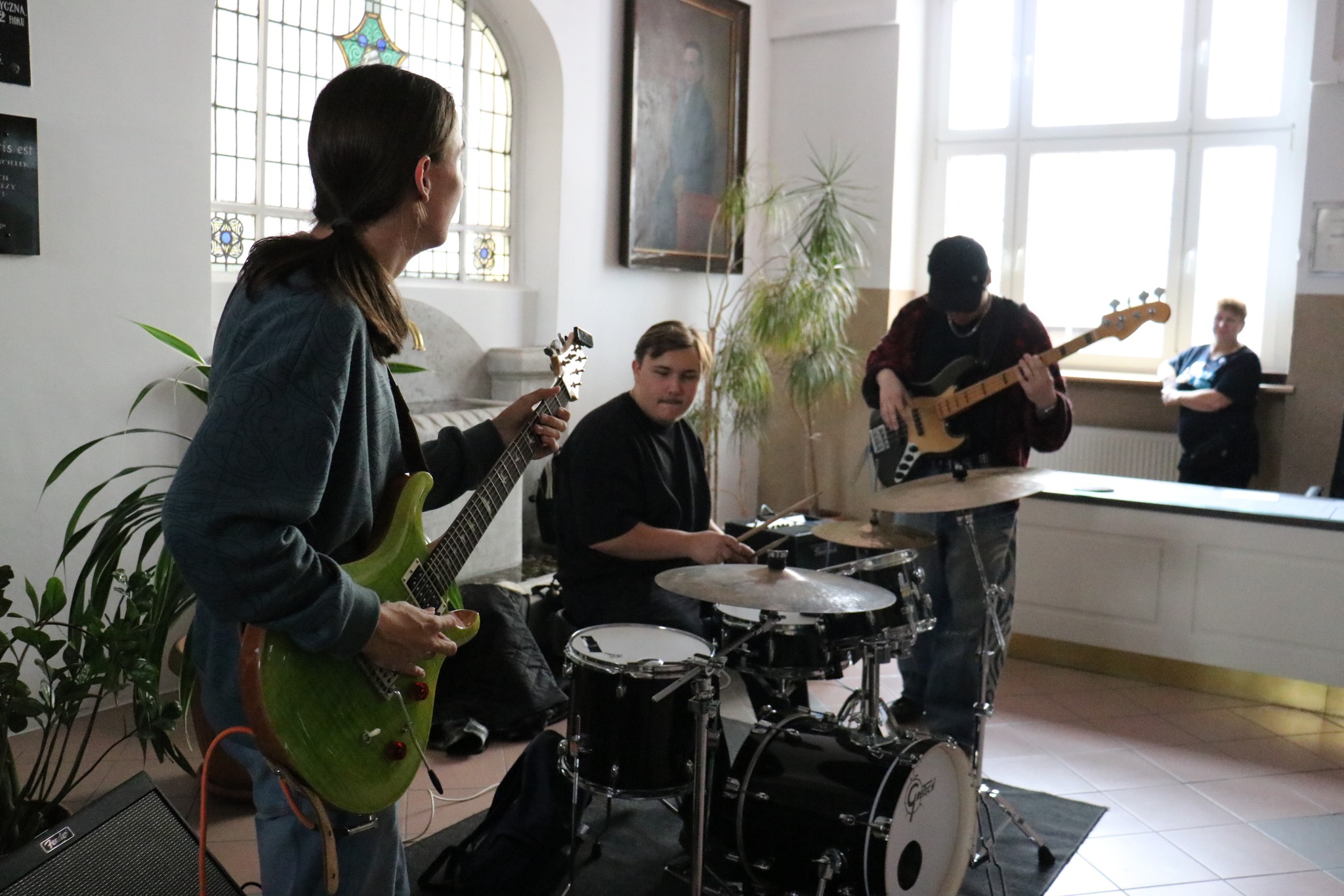 W dniu 15 października 2025 r. podczas długiej przerwy szkolne korytarze zabrzmiały w rytmie jazzu! Zespół Łabaki Collection dał prawdziwy, mistrzowski popis swoich muzycznych talentów. Improwizacja, pulsujący rytm, dusza i energia tego gatunku sprawiły, że każdy, kto choć na chwilę zatrzymał się, by posłuchać, poczuł wyjątkowy klimat nadchodzącego XX Hanza Jazz Festiwalu. Dźwięki gitar elektrycznych i lekkość perkusji wypełniły przestrzeń szkoły, zamieniając zwykłą przerwę w mały koncert pełen emocji i pasji. To była muzyczna uczta, która porwała zarówno uczniów, jak i nauczycieli — przedsmak prawdziwego święta jazzu, które już wkrótce rozbrzmi w naszym mieście. Jazz ma w sobie coś magicznego — potrafi zatrzymać czas, połączyć pokolenia i poruszyć serca. Dziś przekonaliśmy się o tym na własne uszy!